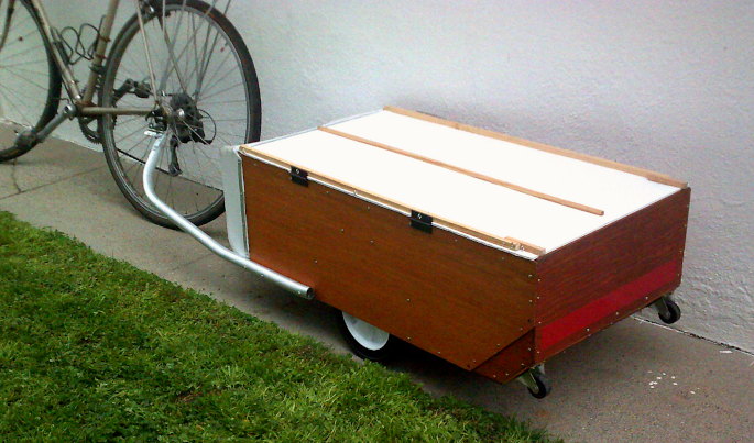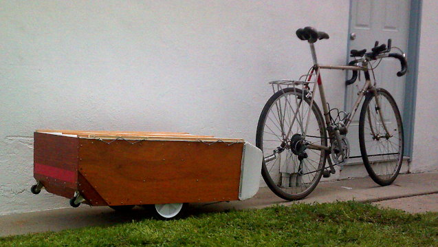 That's the trailer, hitched up to my old errand bike (which I call my "junker"). (There are lots more pictures below.) Since