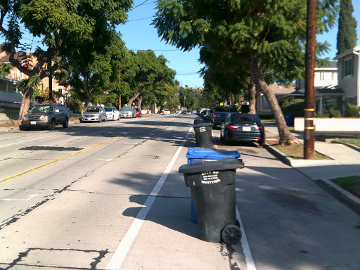 Then we have this kind of thing on trash day, where people put their containers in the lane:
